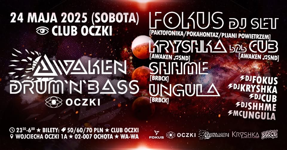 Hejka mam zaszczyt zaprosić was na mega dobry event, który odbędzie się 24 maja 2025. To wydarzenie odbędzie się w "Club Oczki w Warszawie. Wszystkich i nie wszystkich zapraszam serdecznie na to Drum&Bass-owe wydarzenie. Miłego tuptania. Hejka !
